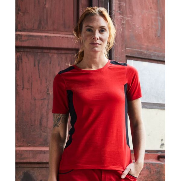 Usko kojen model, okrugli dekolte s elastinom, umeci u kontrastnoj boji sa strane i ramena, izdržljiva, periva na 60°, pogodna za sušenje u sušiliciMaterijal: