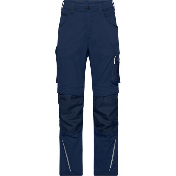 Uzak kroj, elastični pojas s omčama za remen, YKK patentni zatvarači, džepovi na uvlačenje, nekoliko džepova za alat, džepovi za jastučiće za koljena ojačani Cordura®, 2 džepa s patentnim zatvaračem, džep za mobilni telefon, džep za ravnalo, džep za olovke, otporan na paranje šav u tri smjera,