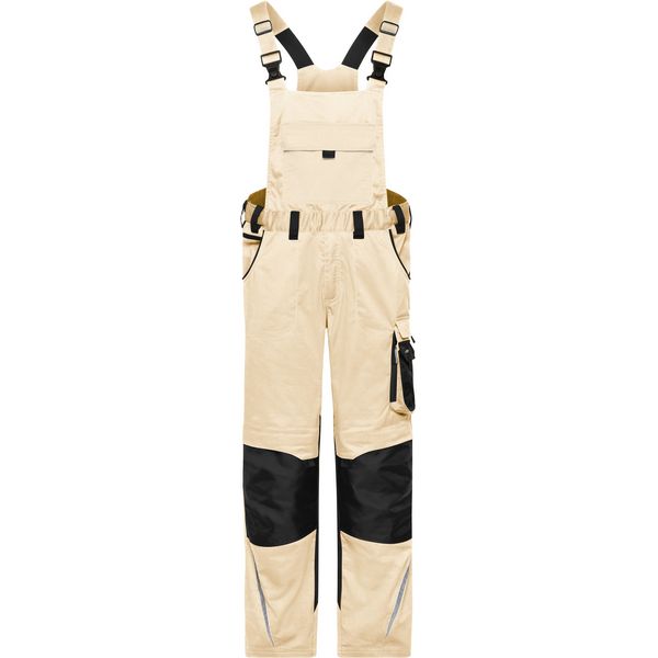 Podesive elastične naramenice, elastični pojas s omčama za remen, YKK patentni zatvarači, džepovi koji se uvlače, nekoliko džepova za alat, džepovi za jastučiće za koljena ojačani Cordura®, prostrani džep s patentnim zatvaračem iznutra, šav u tri smjera otporan na trganje, reflektirajući elementi (bez Materijal:
