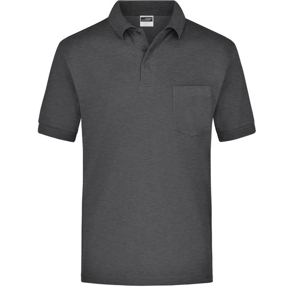 Pleteni ovratnik i manšete polo majice, traka oko vrata, gumbi u tonu, našiveni džep na prsima, dupli šavovi na ramenima i otvorima za ruke, bočni prorezi, fini piqué