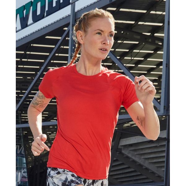 Usko kojen model, prozračan i regulira vlagu, okrugli dekolte, raglan rukavi, lagano strukturirana leđa, brzo sušenje, reflektirajući print (bez zaštitne funkcije) na ramenuMaterijal: