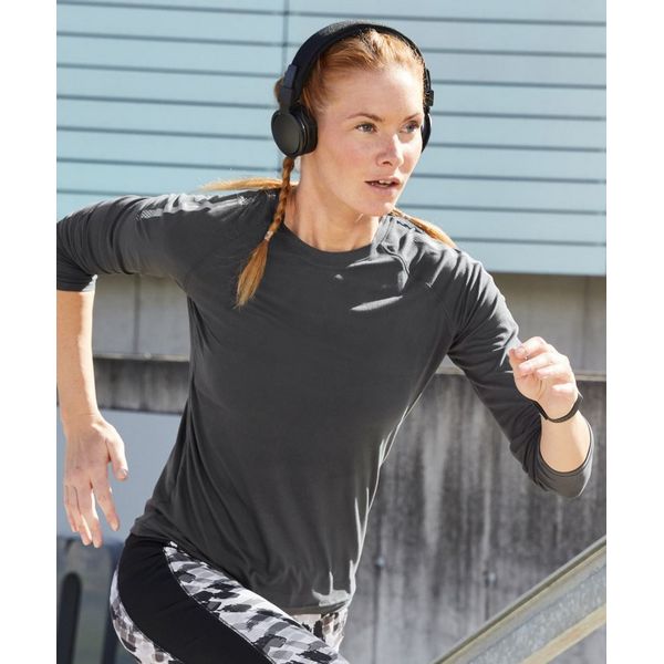 Usko kojen model, prozračan i regulira vlagu, okrugli dekolte, raglan rukavi, lagano strukturirana leđa, brzo sušenje, reflektirajući print (bez zaštitne funkcije) na ramenuMaterijal: