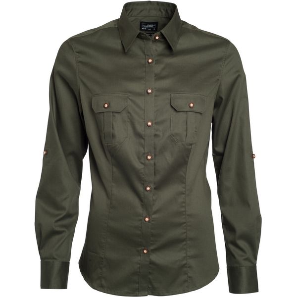 Usko krojen model, rukavi na zavrtanje s gumbima, gumbi za kostim od umjetnog roga, 2 džepa na prsima s preklopom i gumbom, jednostavno održavanjeMaterijal: