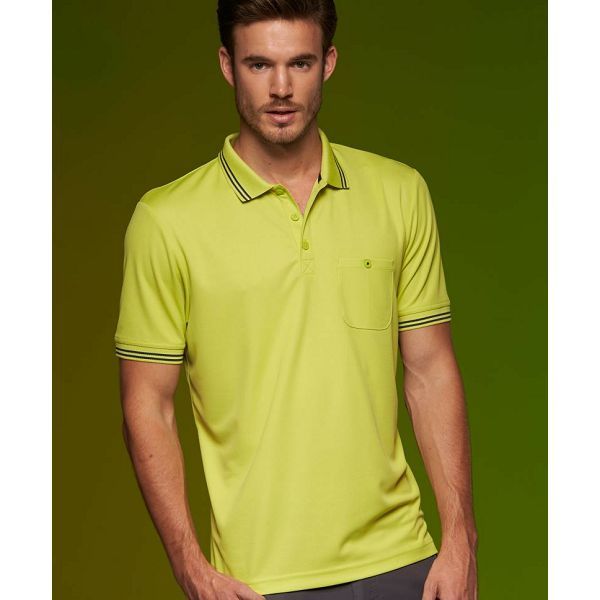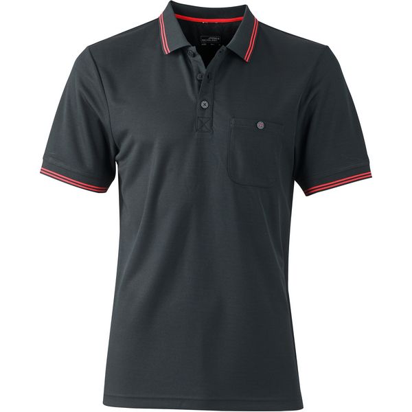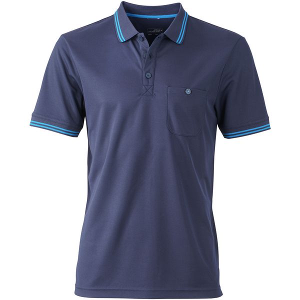 Prozračan, pojas s 3 gumba, rebrasti pleteni ovratnik i manšete s kontrastnim prugama, prsni džep s gumbom, bočni prorezi, mikropoliester, brzo sušenje