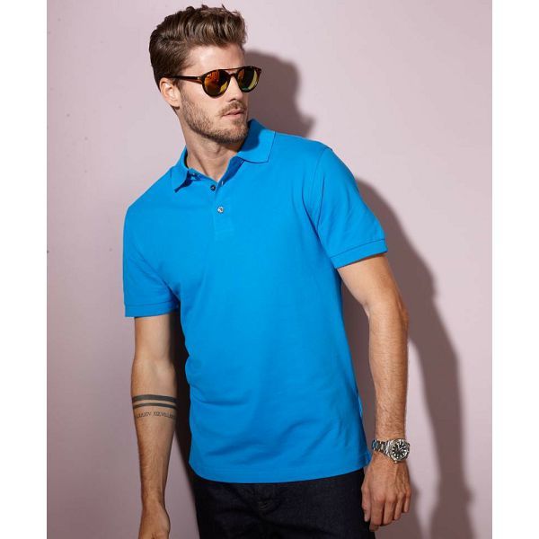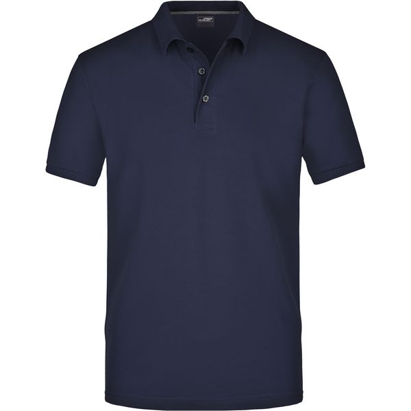 Klasičan kroj, pleteni ovratnik, kopča s 3 gumba u boji titana, rebrasti pleteni manžeti na rukavima, bočni prorezi, visokokvalitetni pima pamuk