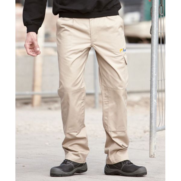 Odbija vodu i prljavštinu, 600 mm vodenog stupca, pojas sa strane s elastičnim umetcima, 1 veliki džep s reflektirajućom trakom na desnom bedru (bez zaštitne funkcije), 2 stražnja džepa, različiti mali džepovi i omče za alat, 2 bočna utikača