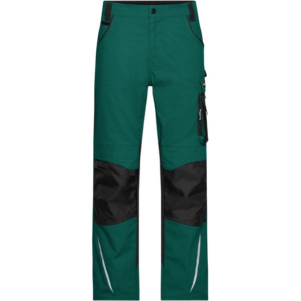 Elastični porub s omčama za remen, džepovi za jastučiće za koljena ojačani Cordurom®, 2 džepa s patentnim zatvaračem, različiti džepovi za navlake i alat, izdržljiva tkanina, reflektirajući elementi (bez zaštitne funkcije) sprijeda i straga, perivo na 60°, pogodno za sušenje u sušilici, Materijal: