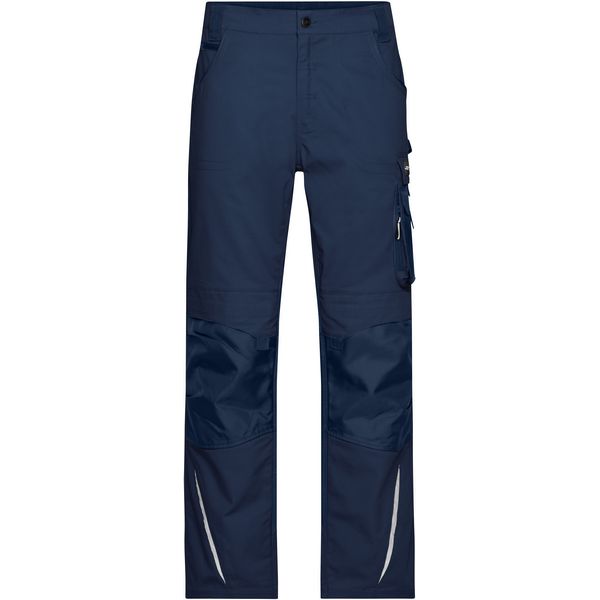 Elastični porub s omčama za remen, džepovi za jastučiće za koljena ojačani Cordura®, 2 džepa s patentnim zatvaračem, različiti džepovi za navlake i alat, izdržljiva tkanina, reflektirajući elementi (bez zaštitne funkcije) sprijeda i straga, perivo na 60°, pogodno za sušenje u sušilici,