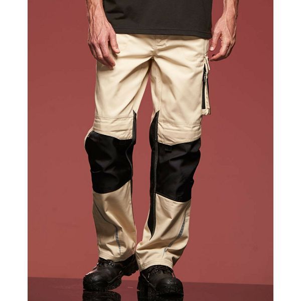 Elastični porub s omčama za remen, džepovi za jastučiće za koljena ojačani Cordurom®, 2 džepa s patentnim zatvaračem, različiti džepovi za navlake i alat, izdržljiva tkanina, reflektirajući elementi (bez zaštitne funkcije) sprijeda i straga, perivo na 60°, pogodno za sušenje u sušilici, Materijal: