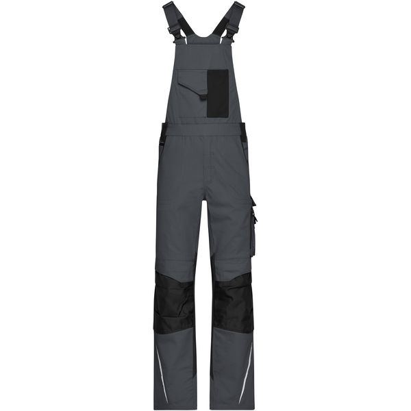 Podesive elastične naramenice, elastični porub s omčama za remen, džepovi za jastučiće za koljena ojačani Cordura®, 2 džepa s patentnim zatvaračem, različiti džepovi za utikače i alate, čvrsti šav s 3 prošiva, poboljšana kvaliteta, reflektirajući elementi (bez zaštitne funkcije) sprijeda i