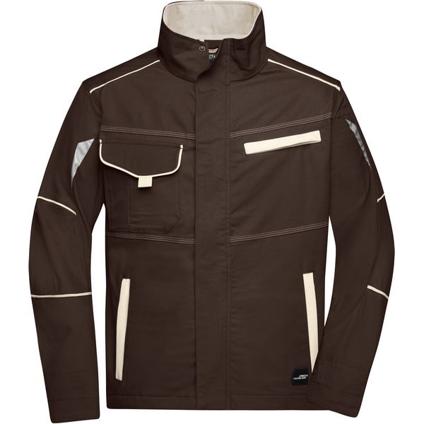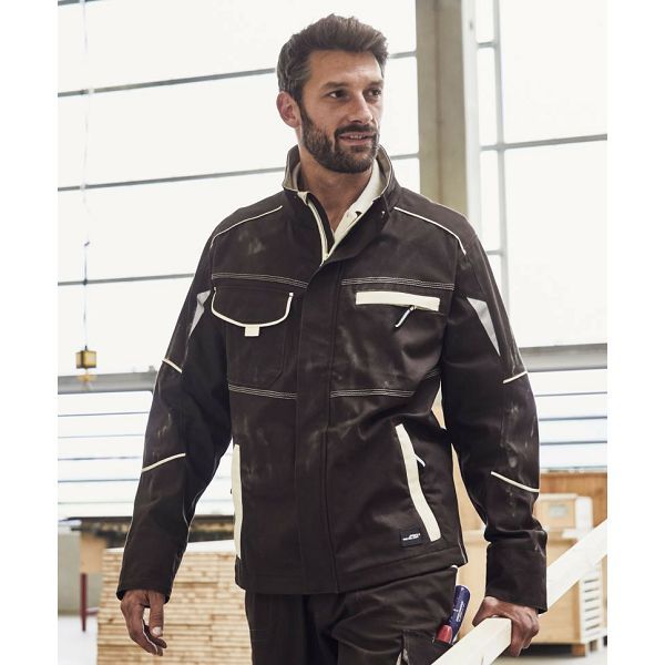 Ergonomski kroj zahvaljujući udjelu elastina, samostojeći ovratnik s unutarnjom stranom od mekanog flisa, ergonomski oblikovani rukavi, unutarnje manžete, podstavljeni patentni zatvarač po cijeloj dužini s vjetrobranom i štitnikom za bradu, skriveni gumbi i patentni zatvarači, džep na prsima s preklopom i kopčom na čičak, bočni džepovi,