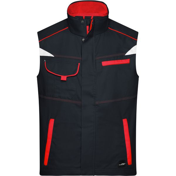 Ergonomski kroj zahvaljujući udjelu elastina, ovratniku koji stoji s mekim flisom iznutra, podstavljenim patentnim zatvaračem po cijeloj dužini s vjetrobranom i štitnikom za bradu, skrivenim gumbima i patentnim zatvaračima, džepu na prsima s preklopom i kopčom na čičak, bočnim džepovima, džepu na prsima i unutarnjem džepu s patentnim zatvaračem Materijal: