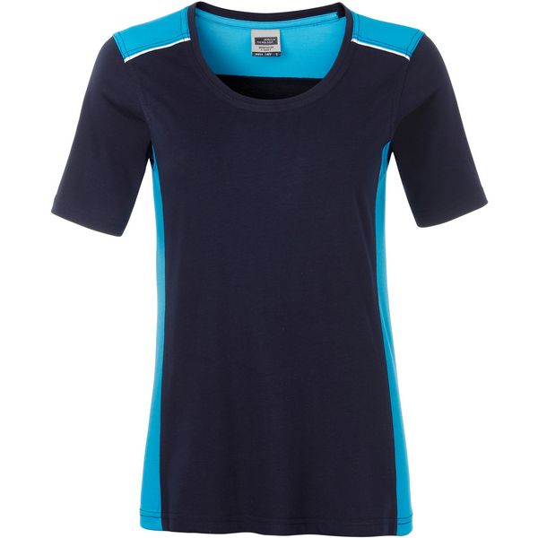 Usko kojen model, traka oko vrata, manšete na vratu s elastinom, umetci u kontrastnoj boji sa strane i ramena, šiljke na prednjem ramenu, perivo na 60°, pogodno za sušenje u sušiliciMaterijal: