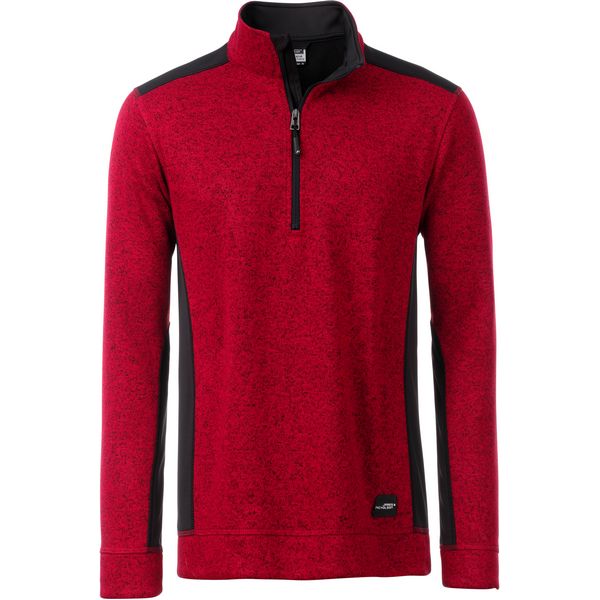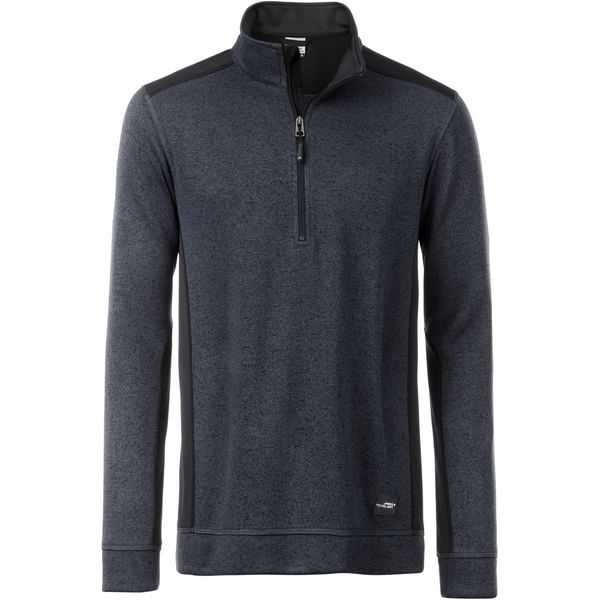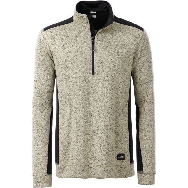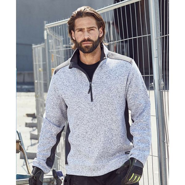 Samostojeći ovratnik sa skrivenim patentnim zatvaračem sa štitnikom za bradu, mekan, grijući materijal koji se lako održava u melange izgledu, izvana: pleteni izgled, elastični softshell umeci sa strane, ramena i rukavi, hrapavi iznutraMaterijal: