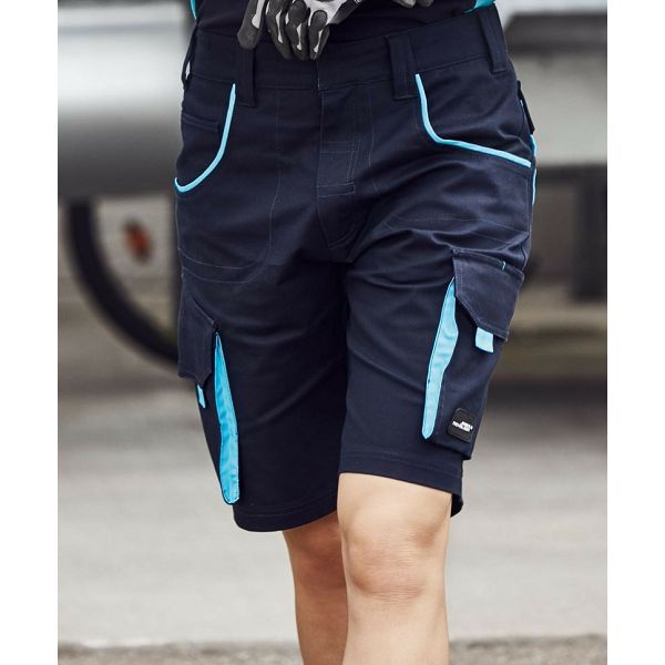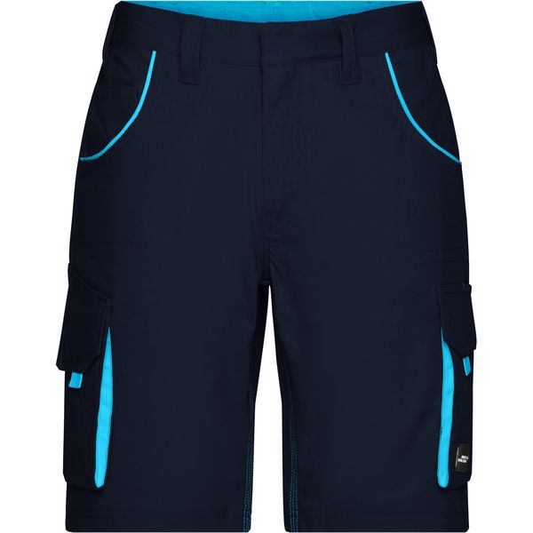 Ergonomsko pristajanje zahvaljujući udjelu elastina, elastični pojas s omčama za remen, skriveni gumbi i patentni zatvarači, džepovi koji se uvlače, nekoliko džepova za alat, džep za ravnalo, džep za mobilni telefon i džep za olovke, otporan na paranje šav u tri smjera, kvaliteta elastičnog laganog platna, 60 Materijal: