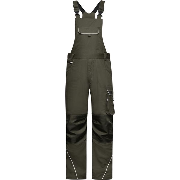 Podesivi naramenik s elastičnim naramenicama, elastični pojas s omčama za remen, područje koljena ojačano Cordurom®, YKK patentni zatvarači, svi gumbi i patentni zatvarači skriveni, džepovi na uvlačenje, nekoliko džepova za alat, 3 džepa s patentnim zatvaračem, džep za ravnalo i držači za olovke ojačani Cordurom Materijal: