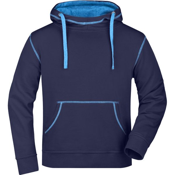 Dvoslojna kapuljača i vezica u kontrastnoj boji, manšete s elastinom, klokanski džep, kontrastni šavovi, kontrastni ravni šavovi, mekana kvaliteta, hrapava iznutraMaterijal: