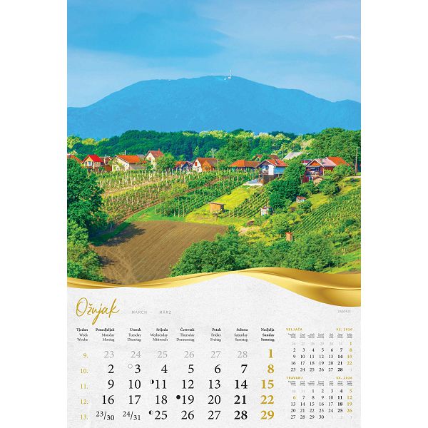 Zidni kalendar Bajkovito Zagorje i Međimurje – 13 listova, 33×55 cm