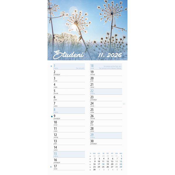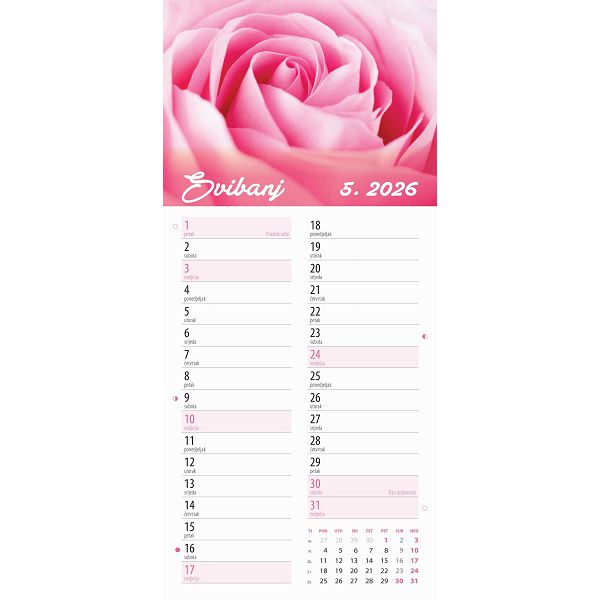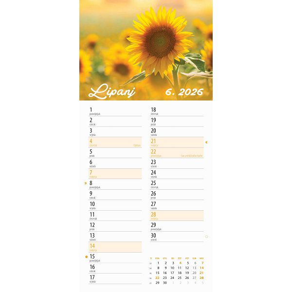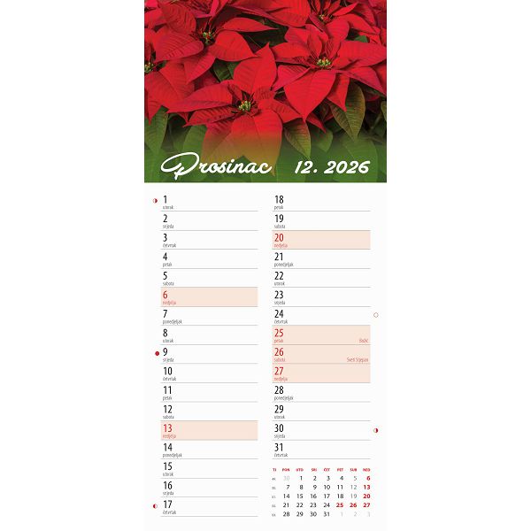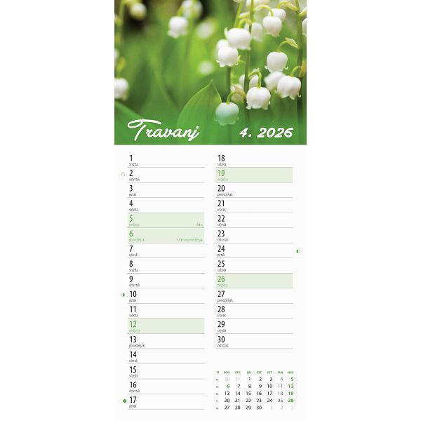 Zidni kalendar Cvjetni planer – 13 listova, 22×55 cm