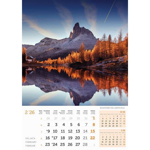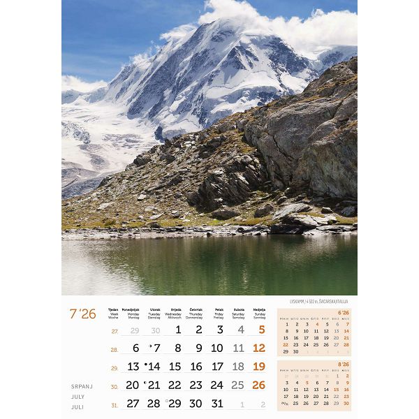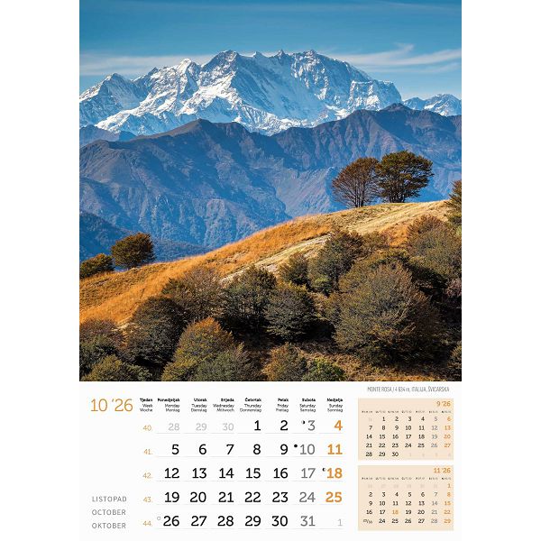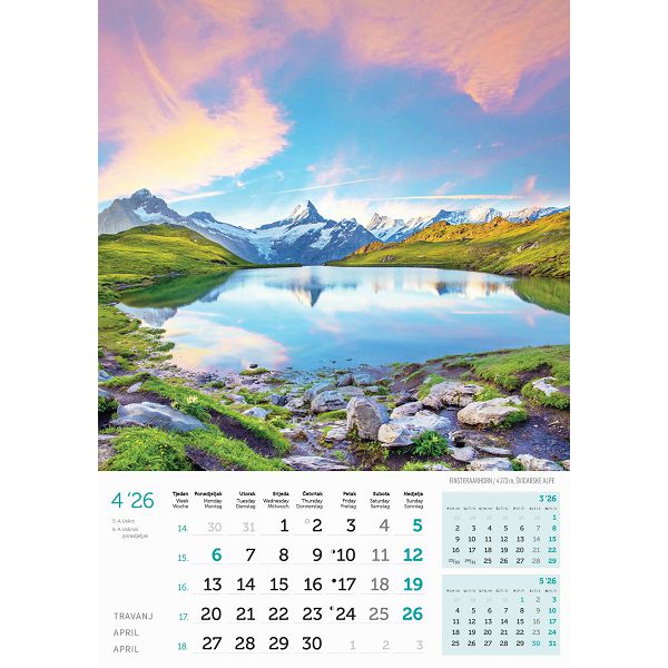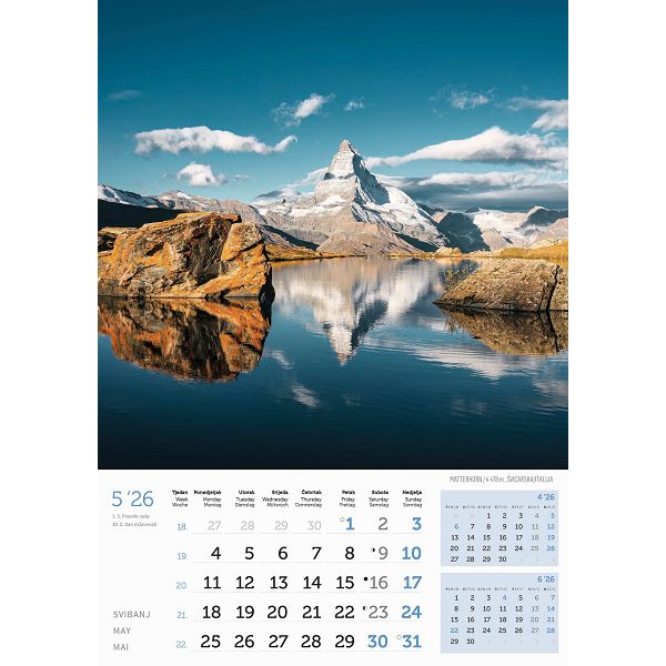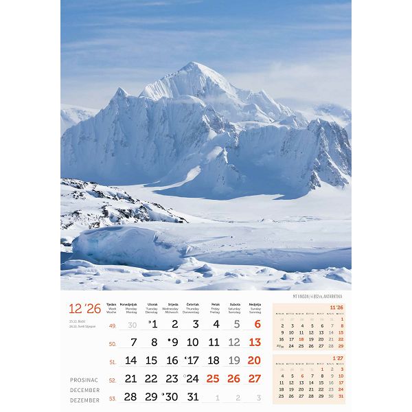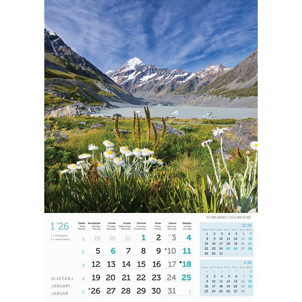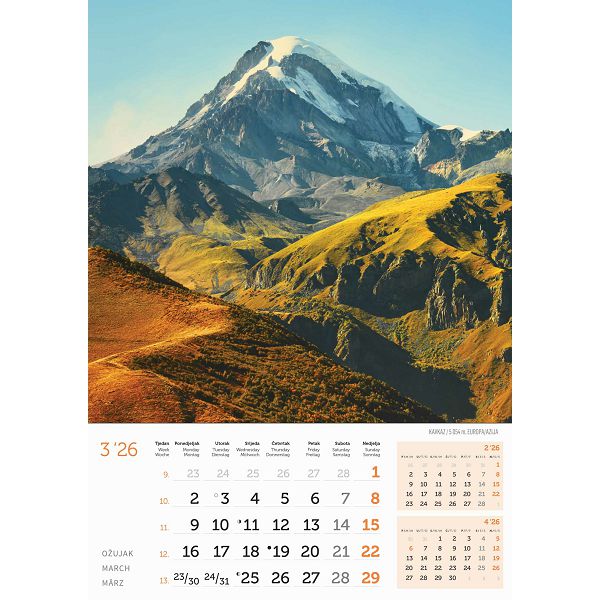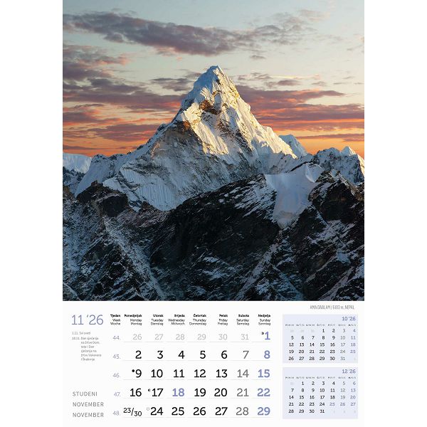 Zidni kalendar Vrhovi svijeta – 13 listova, 30,5×50 cm