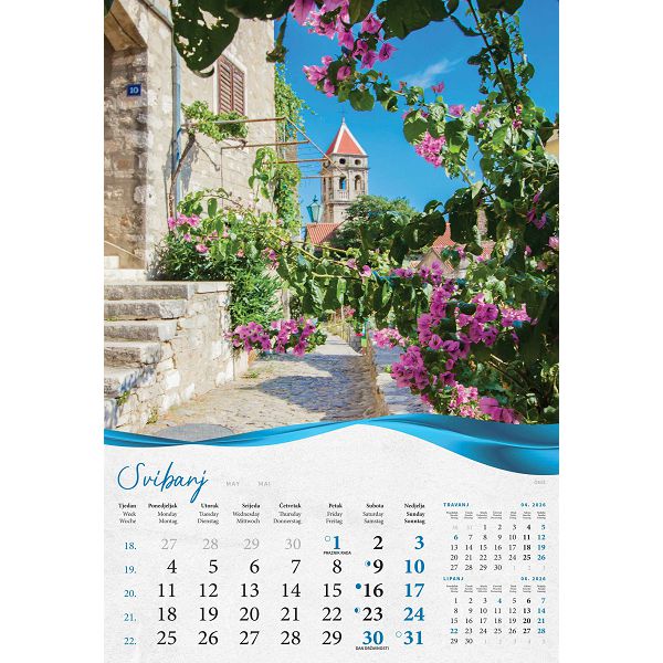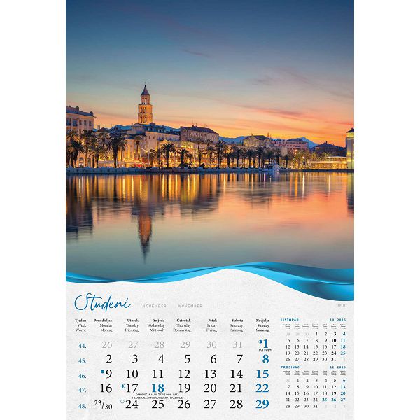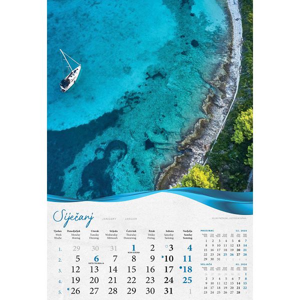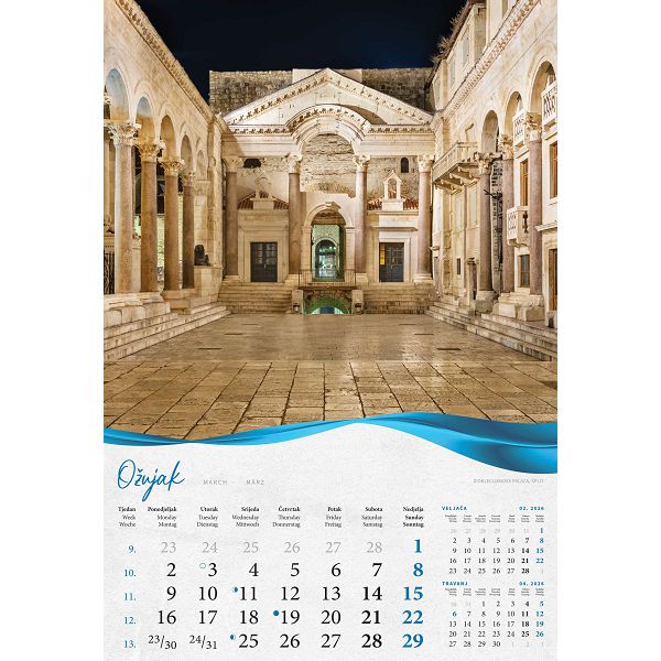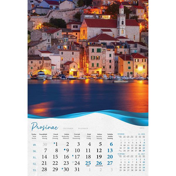 Zidni kalendar Biserna Dalmacija – 13 listova, 33×55 cm