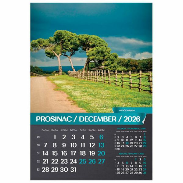Kalendar Hrvatski pejzaži 2026 13L, spirala