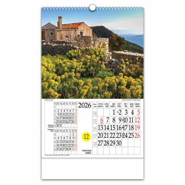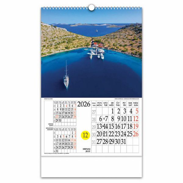 13 listova; sa zaštitnom folijom; dimenzija: 33x48,5 cm; pasica za dotisak 7 cm; spirala; s rotacijskim krugom