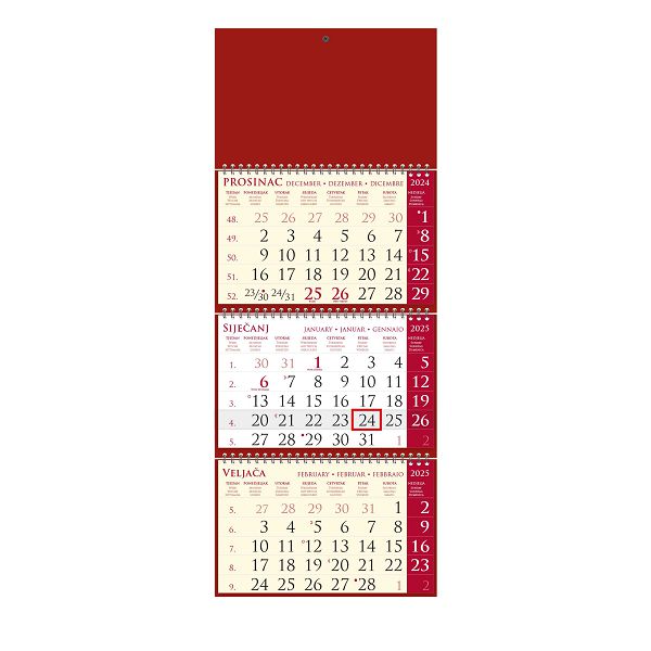 Kalendar trodjelni SIRIO bordo, 3 dijela spirala