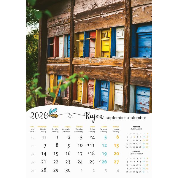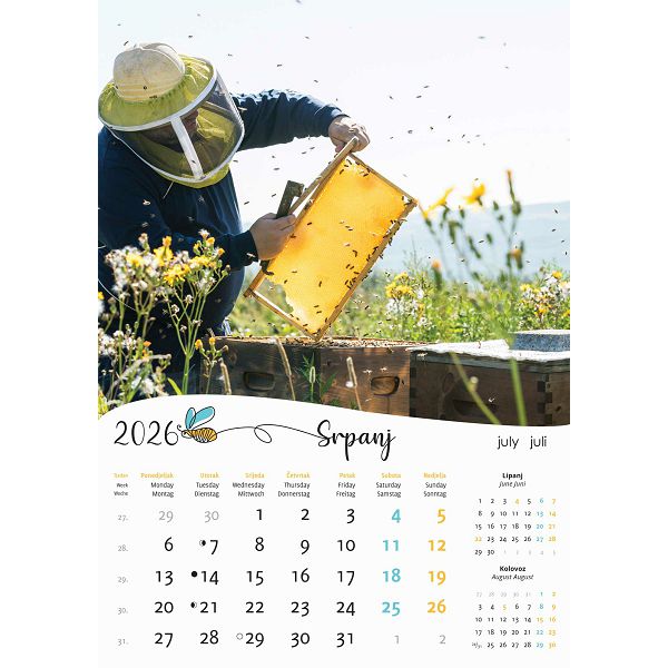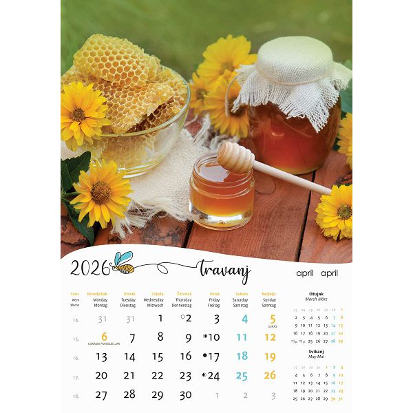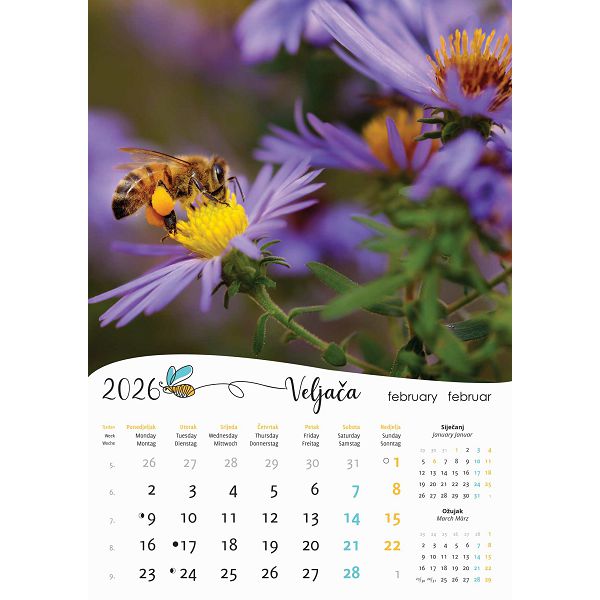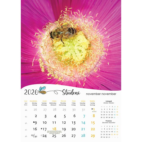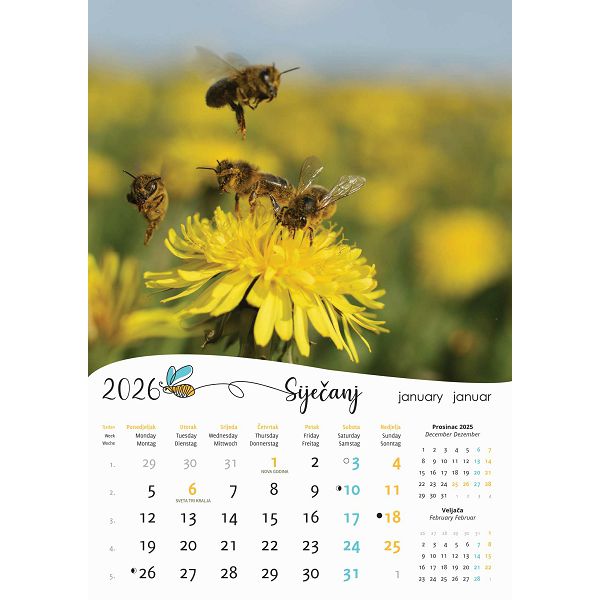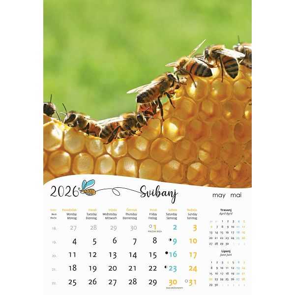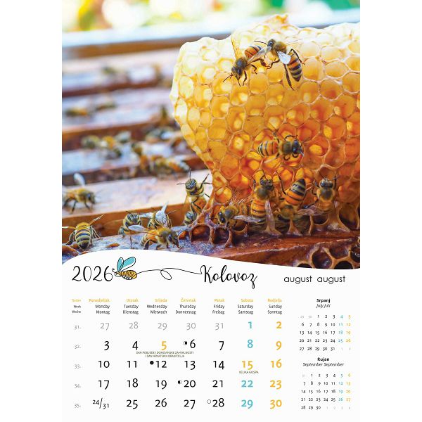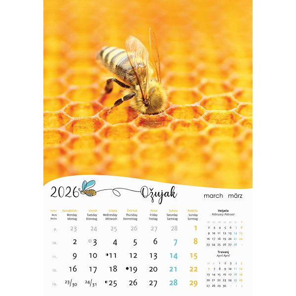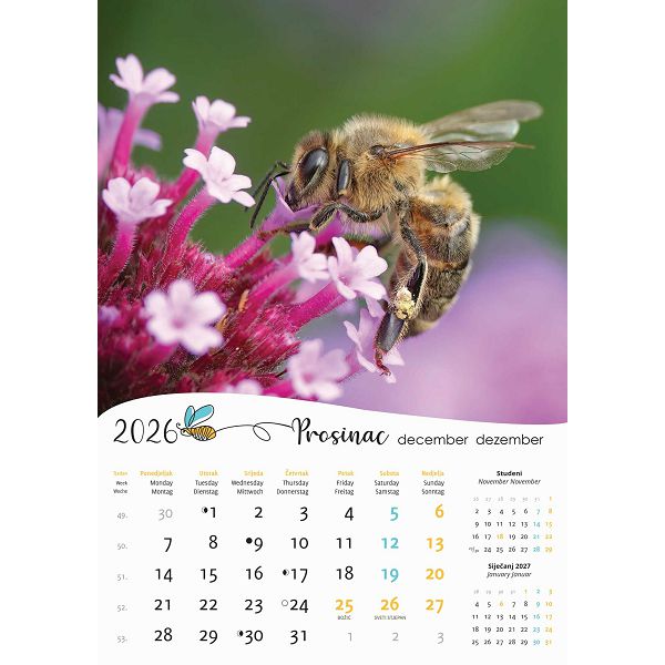 Zidni kalendar Pčele – 13 listova, 30,5×50 cm