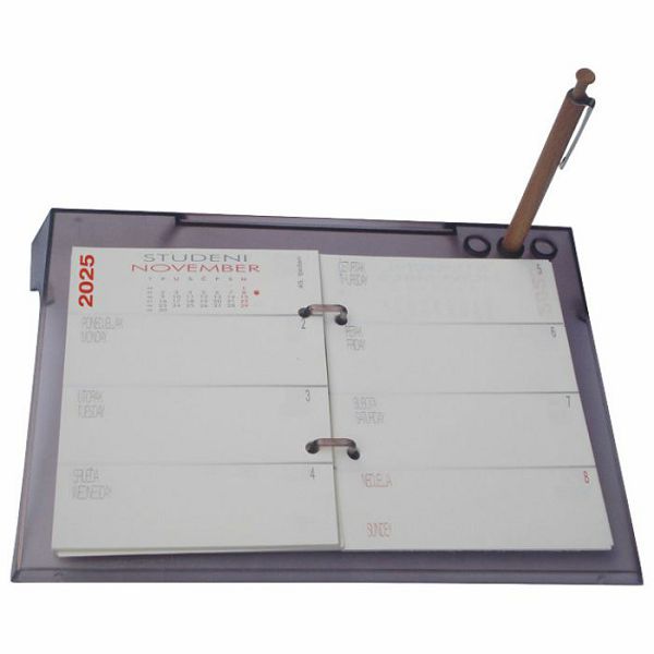 tjedan na dvije stranice; na plexi postolju; standardne rupe od 7 cm; 2 ringa; bež papir; s rupama za 3 olovke