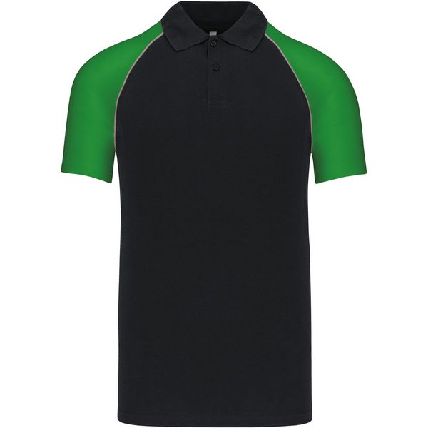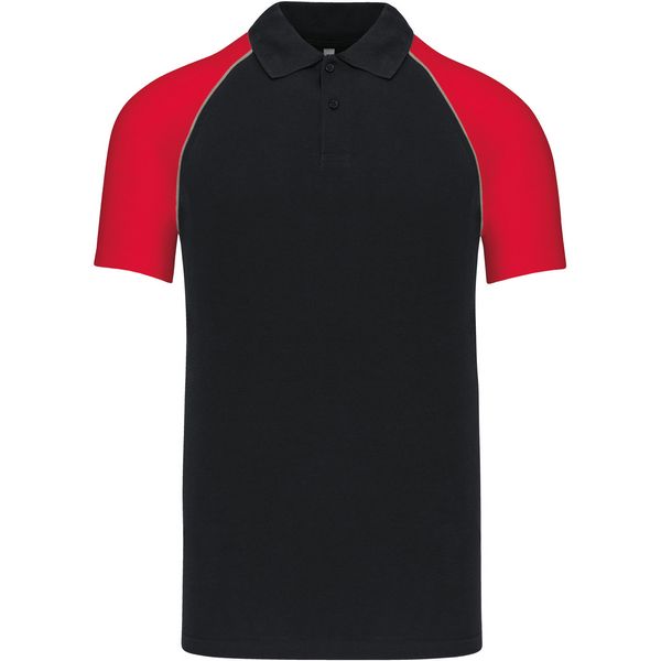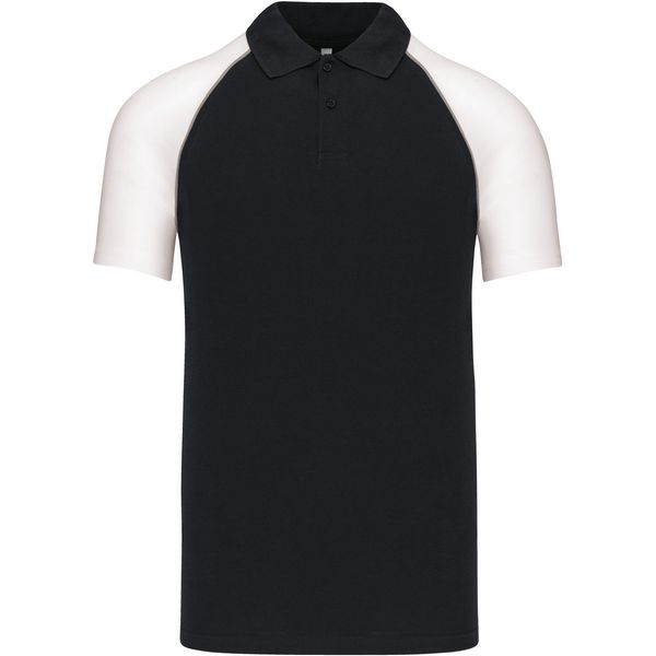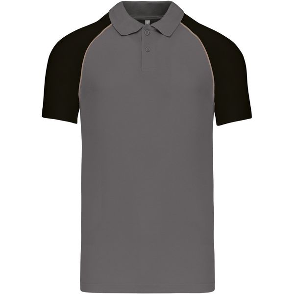 Pleteni ovratnik s rebrastim rubom, 2 gumba u tonu, traka s okovratnikom, kontrastni raglan rukavi i obrub, dvostruki šavovi na rukavima i porubuMaterijal: