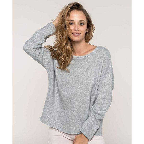 Široki ležerni kroj, veliki dekolte, traka u obliku riblje kosti, neobrađeni rubovi na šunki, dvostruki šavovi na manžetama, neutralna etiketa veličineMaterijal: