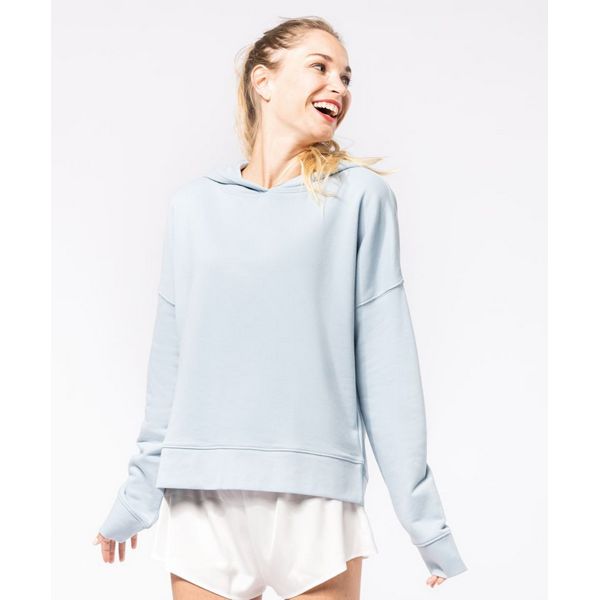 Široki ležerni kroj, kapuljača s podstavom od žerseja, traka od kepera, umetnuti rukavi, rebrasto pletivo na manžetama i rubu, etiketa neutralne veličineMaterijal: