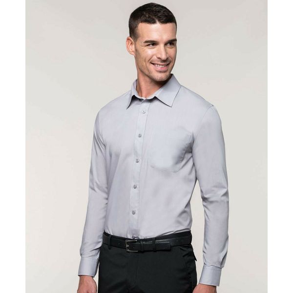 Učvršćeni ovratnik, ukošeni manžeti, zaobljeni porub, gumbi u tonu, 2 rezervna gumba, džep na prsima, stražnji jaram s 2 bočna naboraMaterijal: