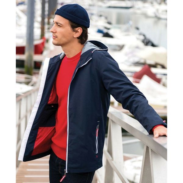 Vodootporan (3000 mm vodenog stupca), prozračan (5000 g/m² u 24 sata), podesiva kapuljača s mrežastom postavom, 2 prednja džepa s patentnim zatvaračem, 1 unutarnji džep, zavareni šavovi, pristup ukrasima na boku i prsima
