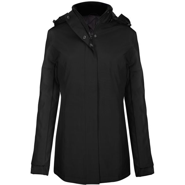 Samostojeći ovratnik s podstavom od flisa, odvojiva kapuljača, patentni zatvarač s preklopom i skrivenim kopčama, 2 vanjska džepa s patentnim zatvaračem, 1 unutarnji džep s patentnim zatvaračem, pristup ukrasima u podstaviMaterijal: