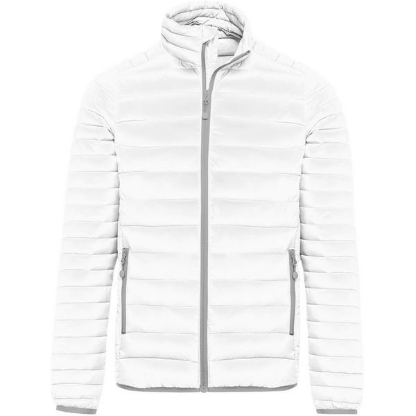 Samostojeći ovratnik sa štitnikom za bradu, elastične manšete na rukavima i rubovima, 2 bočna džepa s patentnim zatvaračem, bočne stranice s okomitim prošivanjem, kontrastna unutarnja strana, tkanina laka za održavanje, lagana i topla, izdržljiva, glatka tkanina, sklopiva u torbu za pohranu
