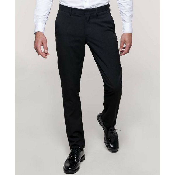 Pojas s omčama za remen, tanke nogavice, neobrubljene nogavice kako bi se mogle krojiti, patentni zatvarač sa skrivenom kukicom i gumbom, 2 talijanska prednja džepa i 2 stražnja džepa s rubovima, polupodstavljeni prednji dio, francuske veličine: molimo pogledajte Materijal: