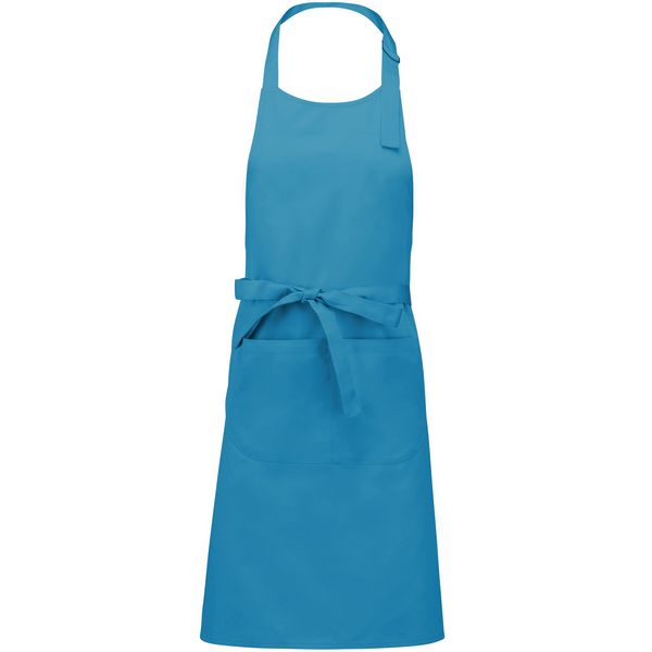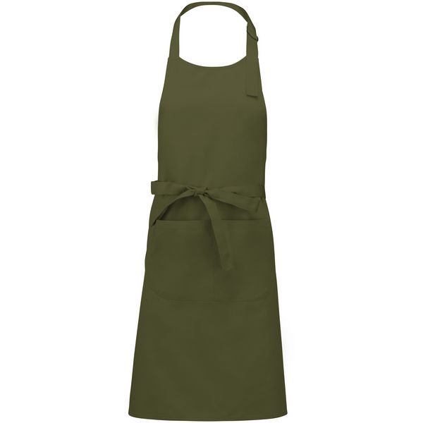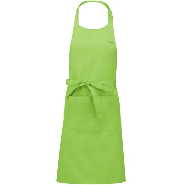 Kravata oko vrata s podesivom metalnom kopčom, prednji džep: 20x31,5 cm, duge trake oko struka, veličina: 76 cm širina, 90 cm duljina, perivo na 60°Materijal: