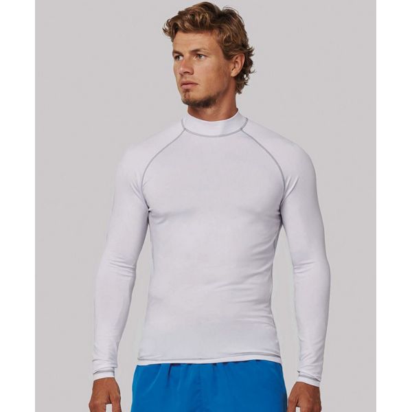 Uski kroj, visoki ovratnik, raglan rukavi s kontrastnim šavovima, elastična kopča na prednjem rubu kroz koju se može provući uzica kratke hlače za stabilizaciju, UV zaštita 50Materijal: