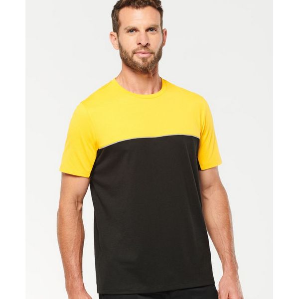 Usko krojen model, okrugli ovratnik od rebrastog pletiva, ogrlica u kontrastnoj boji, dvostruki šavovi na rukavima i porubu, kontrastni obrub, predtretman protiv pilinga, mogućnost skidanja etikete, perivo na 60°Materijal: