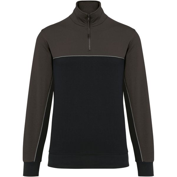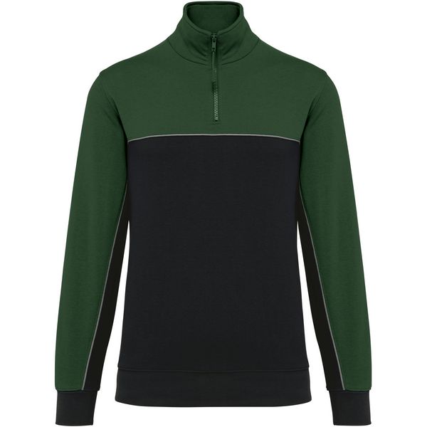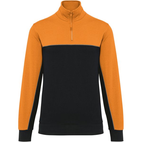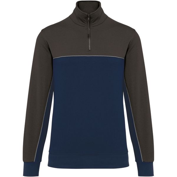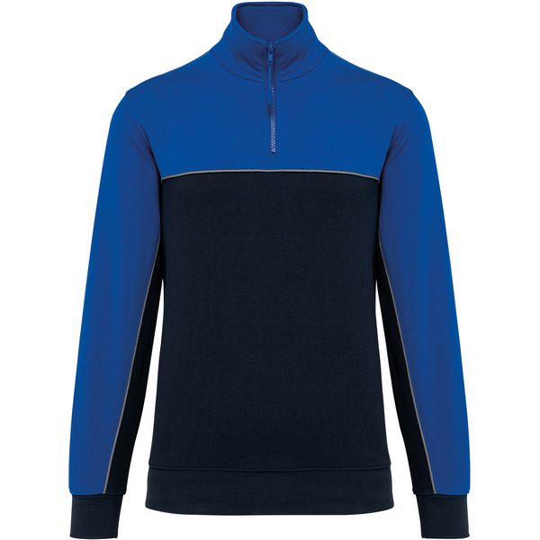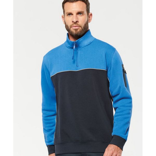 Stojeći ovratnik, polumjesec na ovratniku, traka u kontrastnoj boji, umetnuta u rukave, rebrasti manšete na rukavima i porubu, elastični držač za olovke s 3 pretinca na lijevom rukavu, kontrastni obrub, LSF (flis s niskim skupljanjem) za manje skupljanja, TearAway Materijal: