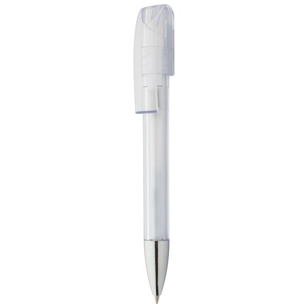 Plastic ballpoint pen in transparent colour, with chrome tip and blue refill.Veličina proizvoda: