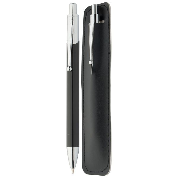 Metal ballpoint pen in matching colour PU leather case. With blue refill.Veličina proizvoda: