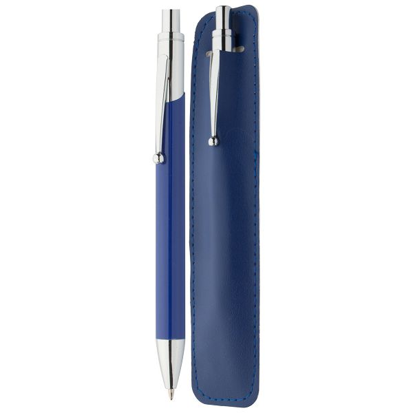 Metal ballpoint pen in matching colour PU leather case. With blue refill.Veličina proizvoda:
