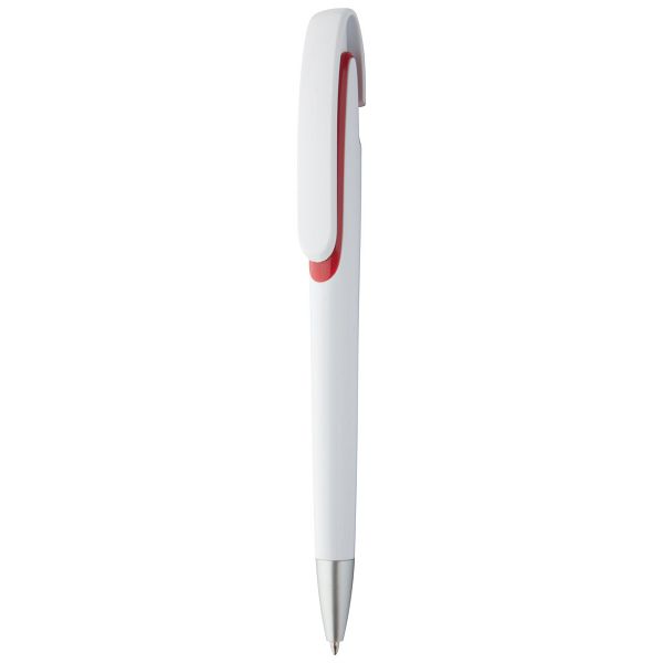 Plastic ballpoint pen with white barrel and silver tip. With blue refill.Veličina proizvoda: