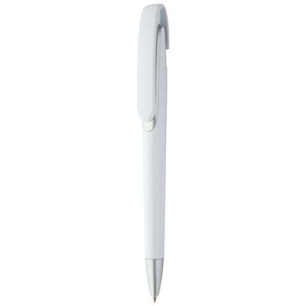 Plastic ballpoint pen with white barrel and silver tip. With blue refill.Veličina proizvoda: