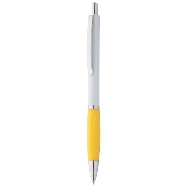 Plastic ballpoint pen with coloured rubber grip, metal clip and tip. With blue refill.Veličina proizvoda: