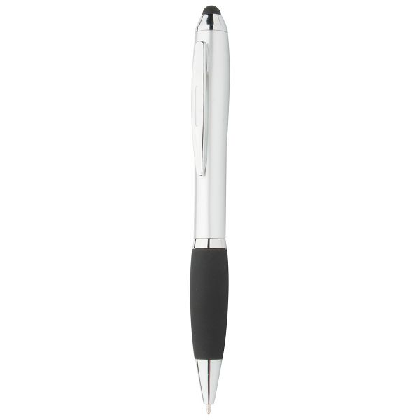 Plastic ballpoint and touch screen pen with silver barrel and coloured rubber grip. With blue refill.Veličina proizvoda: