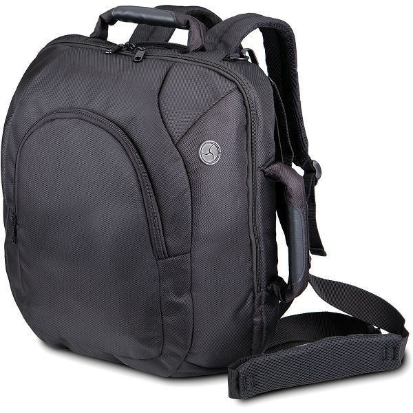 Pojačane ručke, skrivene naramenice, podesiva i odvojiva naramenica, prednji džep s dijelom za rokovnike, podstavljeni glavni pretinac za prijenosno računalo od 17", mrežasti umetak na leđima, također prenosiv kao ruksak, vodič za slušalice, veličina: 40x35x18cmMaterijal: